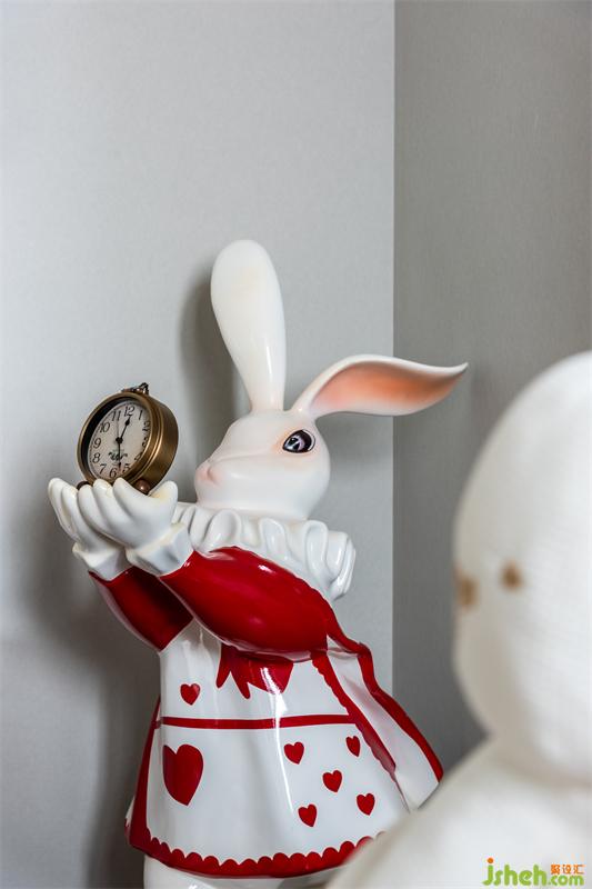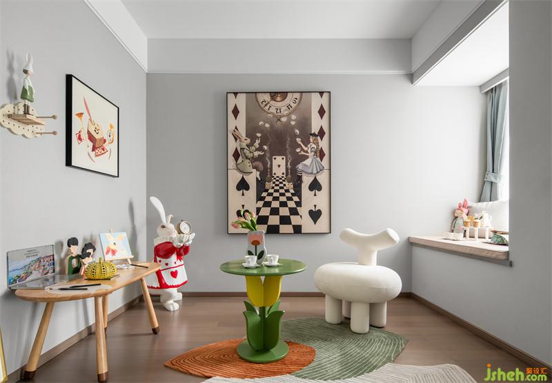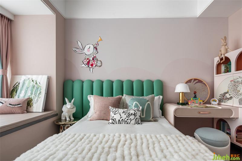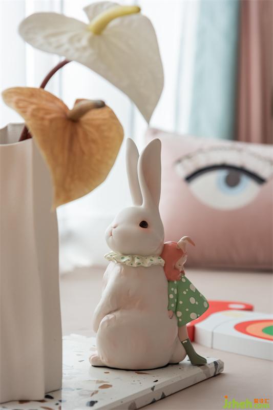 小主人的獨立私人空間,在滿足舒適與靜謐的前提下,床品與各類掛飾擺件都最大化的滿足了孩童對兔子的熱愛。