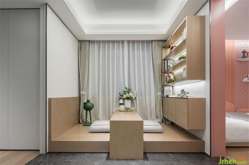 這里是放松精神,找尋自我的心靈之所,也是父母和孩子的互動空間,可閑聊、可探討、可展望……這才是家的第一要義。樣板房設(shè)計,實木地板之上,綠色童真的落地雕塑,勾勒出濃郁的自然藝術(shù)氛圍。簡潔利落的書架上各種精巧的陳設(shè)擺件,無不透出對生活美學(xué)和人文藝術(shù)的參悟,讓主人隨心所欲體驗沉浸式的靈魂旅行。