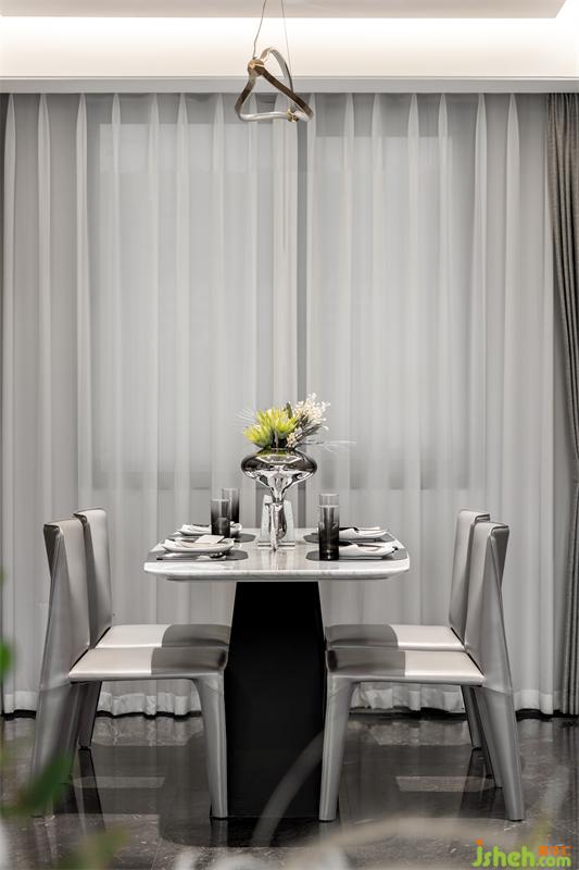 餐桌與餐椅的設(shè)計都極為簡約,把舞臺留給家的煙火氣。銀色花器與餐具精致搭配,精致藏于細(xì)節(jié)。