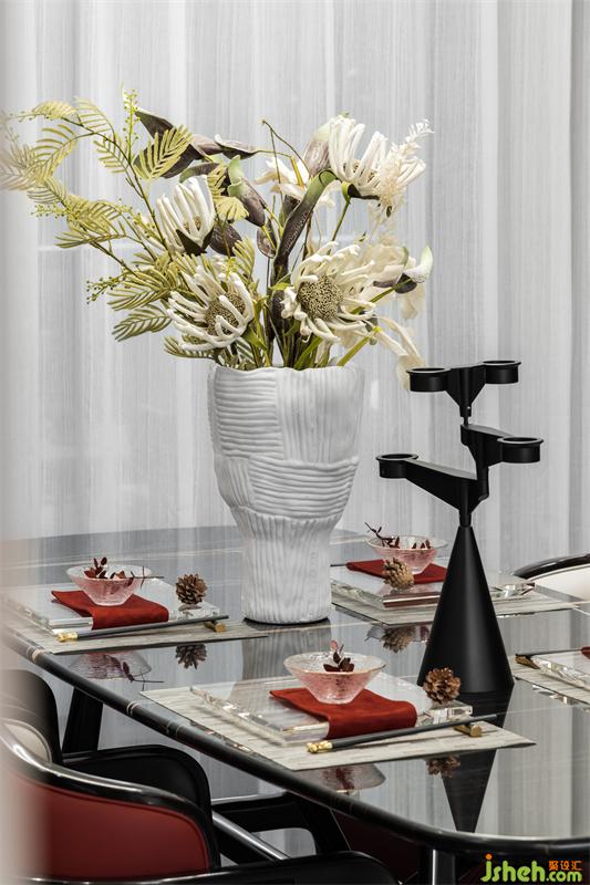 餐廳的設(shè)計(jì)延續(xù)著客廳的氛圍,布置出安適的觸感、沉浸式的體驗(yàn)感,高還原度的場景化傳達(dá)出寄情山水的理想生活追求。設(shè)計(jì)的是空間,更是生活,廚房是中式風(fēng)格主導(dǎo)的空間,用永恒的自然元素貫通所有,超越復(fù)雜的生活表象,回歸到詩意的棲居。