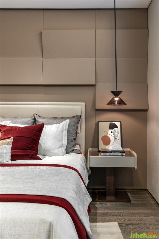 主臥以簡(jiǎn)約的元素表現(xiàn)東方風(fēng)格的古樸大方,同時(shí)將奢華嵌入細(xì)節(jié)中,樣板房設(shè)計(jì)以素色的東方審美符號(hào)為主,采用柔和的中性色彩,給人優(yōu)雅溫馨、自然脫俗的感覺,將傳統(tǒng)風(fēng)韻與現(xiàn)代舒適感完美地融合在一起。