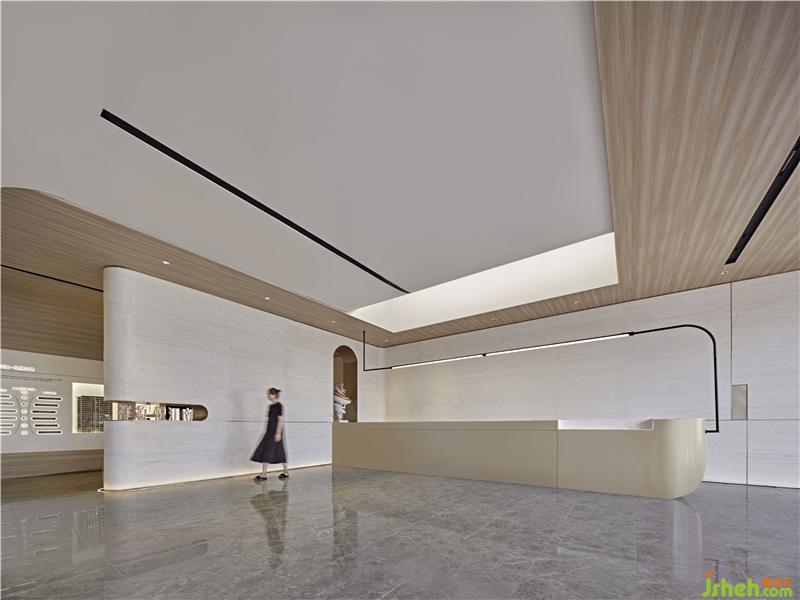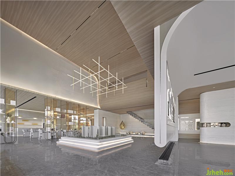 時(shí)間在天井下方的接待處,留下閃亮的金光,明亮的空間氣氛,內(nèi)外一體同呼吸。呈現(xiàn)出層迭變化的光影蘇州售樓處設(shè)計(jì),凸顯出一種自然的時(shí)序節(jié)奏,并賦予觀者一種在吐納間,涵蓋物外的心境。