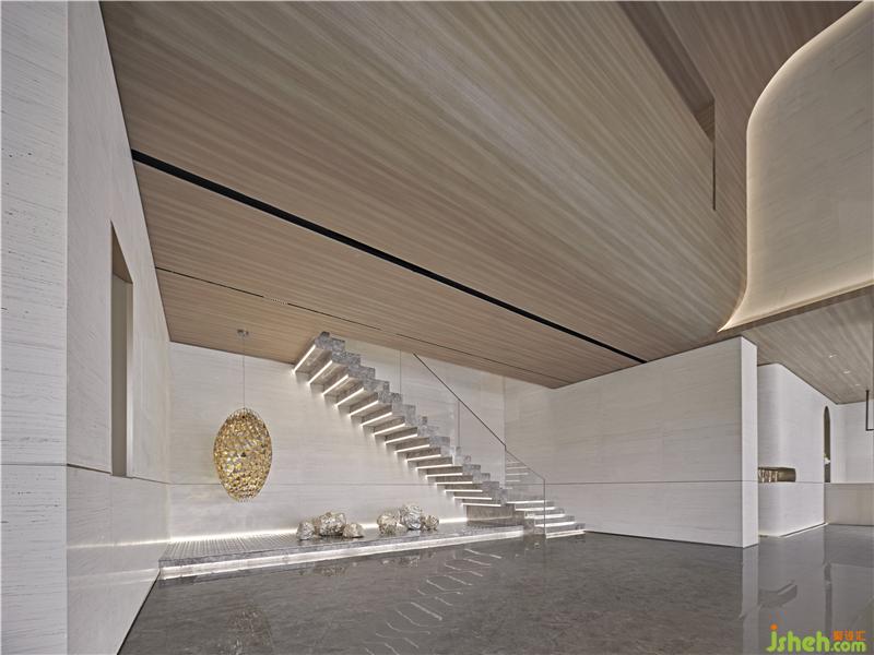 行走間借著不同上下視角的轉(zhuǎn)換,使觀者依附角度的轉(zhuǎn)換蘇州售樓處設(shè)計(jì),塑造多重空間體驗(yàn)感,形成不同思想的交互。