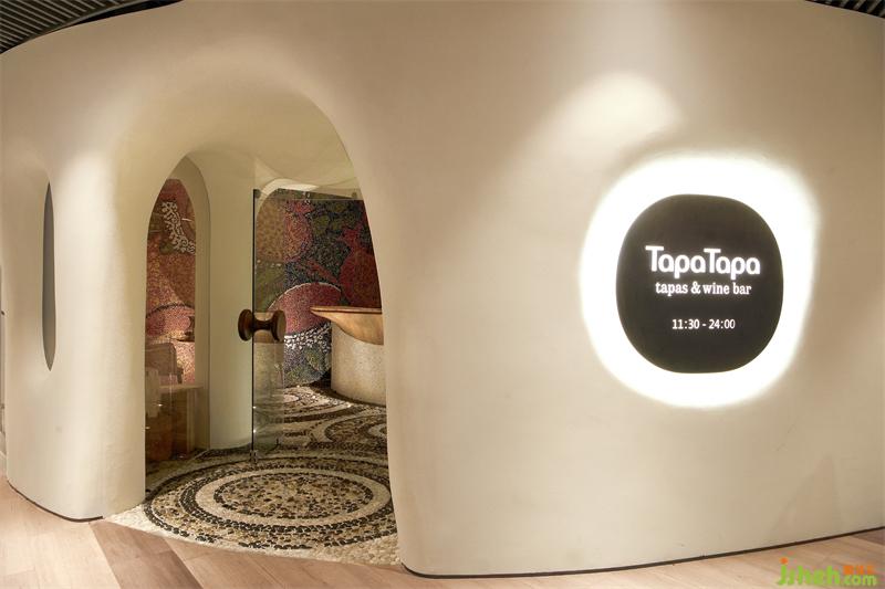 上海Tapa Tapa西班牙餐廳,位于北外灘白玉蘭廣場,其經(jīng)營理念是打造一個融合了巴塞羅那熱情和上海小資情調(diào)的餐飲空間,開創(chuàng)一個既有西方地中海浪漫風(fēng)情又兼具東方優(yōu)雅含蓄的生活場域。上海餐廳設(shè)計為了兼具融合這兩種地域文化的特點,CROX闊合以 "海的回聲" 為設(shè)計概念,將自然的渦漩體作為整個空間的基礎(chǔ),海螺的紋路一圈圈巧妙的安排在細(xì)長形的場地內(nèi),像是一處既開朗又神秘的洞穴。天然的韻律在此自由、豐富、隨心所欲的流淌,為賓客帶來非常愉悅的視覺觀感和用餐體驗。
