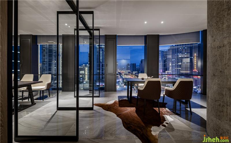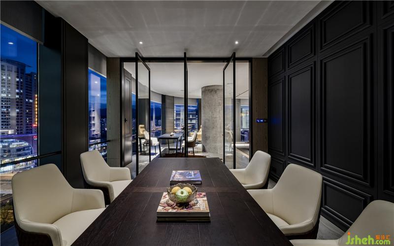當(dāng)設(shè)計(jì)團(tuán)隊(duì)進(jìn)行空間創(chuàng)作的構(gòu)想,為了及時(shí)地與伙伴交流互換,碰撞不同的思想,探討關(guān)于生活的無(wú)限可能性,幕墻就成為了盛放意識(shí)的容器。會(huì)議室增強(qiáng)了白色玻璃幕墻的信息輻射作用,達(dá)到思想交互的開(kāi)放式創(chuàng)作。