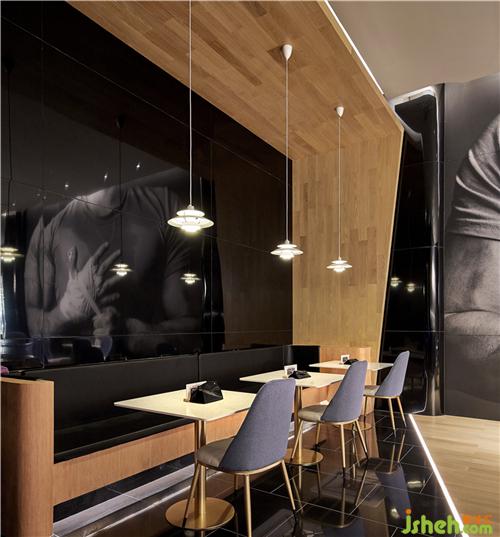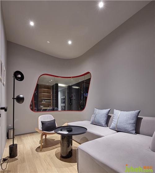 主要材料:黑色鋁塑板、灰色乳膠漆、橡木地板、線型燈光