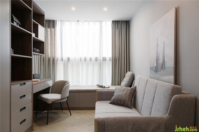 次臥平時(shí)主要用作書房和衣帽間功能,如果家人或朋友過來也可以作為客房。
