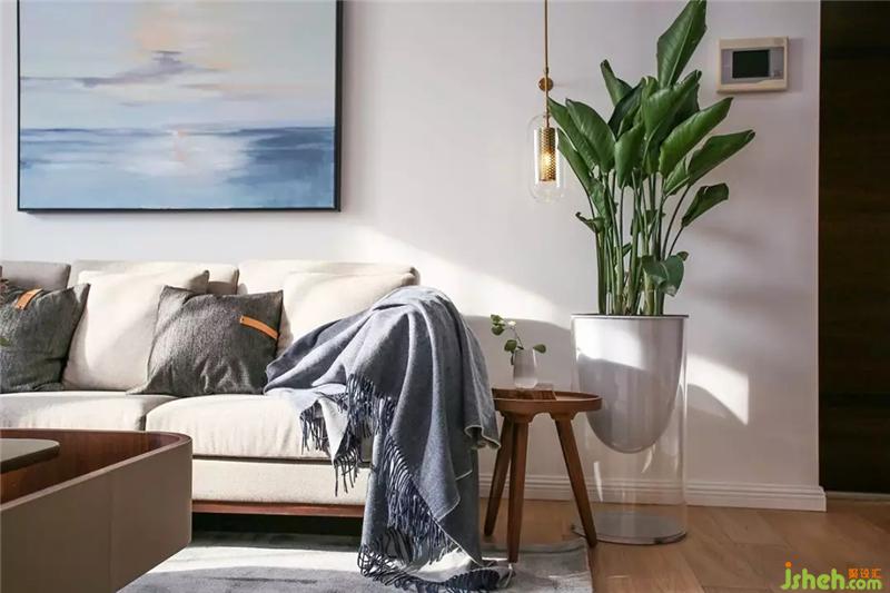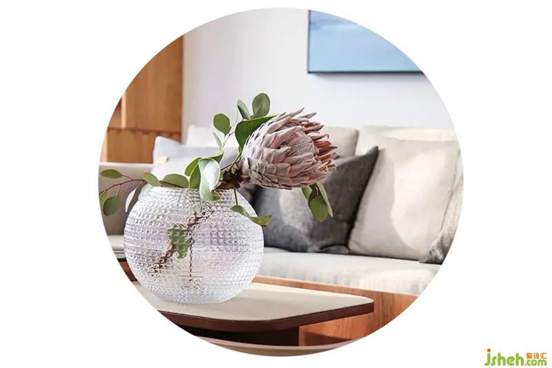 當午后的陽光最大限度的照進室內(nèi),灑在慵懶的沙發(fā)上是一天最美的時刻,太空花器比落地花器更具輕盈感,同樣壁燈也取代了落地燈的形式讓空間的形式感更強達到平衡。室內(nèi)設計師