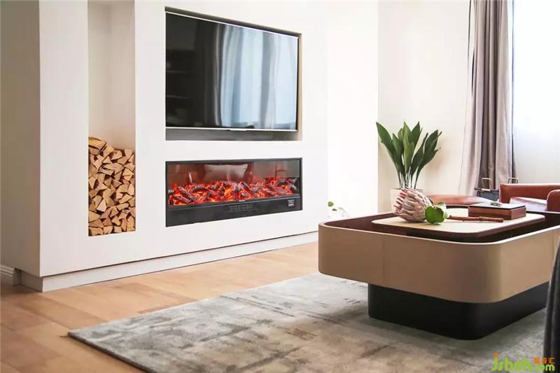 因此材質(zhì)上的“暖”尤為重要,比如面料以棉、麻、絨布為主,家具也多使用木質(zhì)皮質(zhì),明亮溫馨的燈光運用。電視背景墻的電子壁爐和原生態(tài)的木柴營造出“暖”的氛圍。室內(nèi)設計師