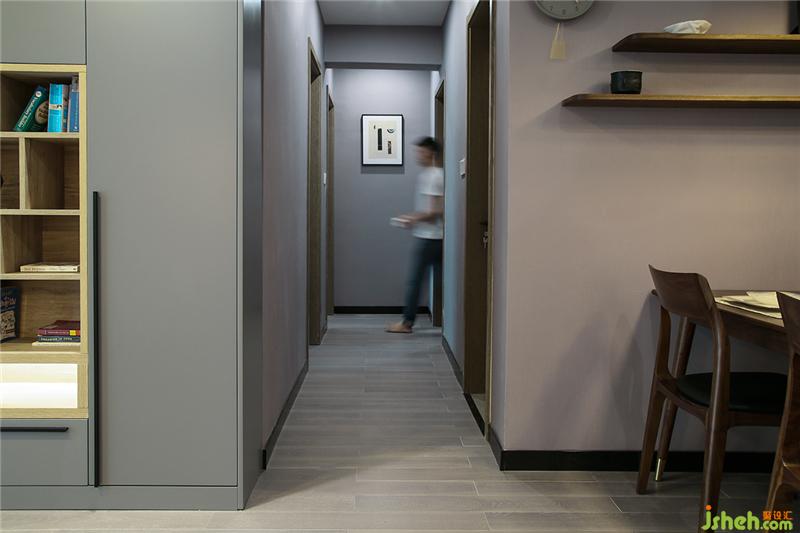 玄關(guān)&鞋柜頂天立地的組合簡(jiǎn)直是收納神器,而且空間利落顯得高大。廚房的門與餐廳連接的墻打通,做成玻璃推拉門。