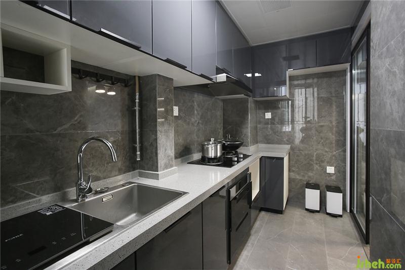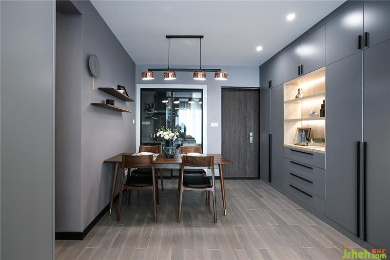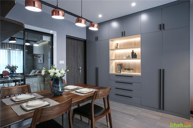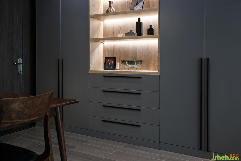 一灰到底,櫥柜使用耐污的納米門板,廚房雖小五臟俱全,因此是設(shè)計(jì)的重點(diǎn),屋主不喜歡瓶瓶罐罐或各式料理工具是擺在臺(tái)面或掛,海邊的風(fēng)塵很大,掛在外面增加收拾工作量。提前挑好消毒柜、烤爐、洗碗機(jī)、油煙機(jī)保證這些大家伙融入家里時(shí),可以尺寸貼合整潔不會(huì)突兀。