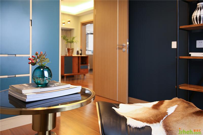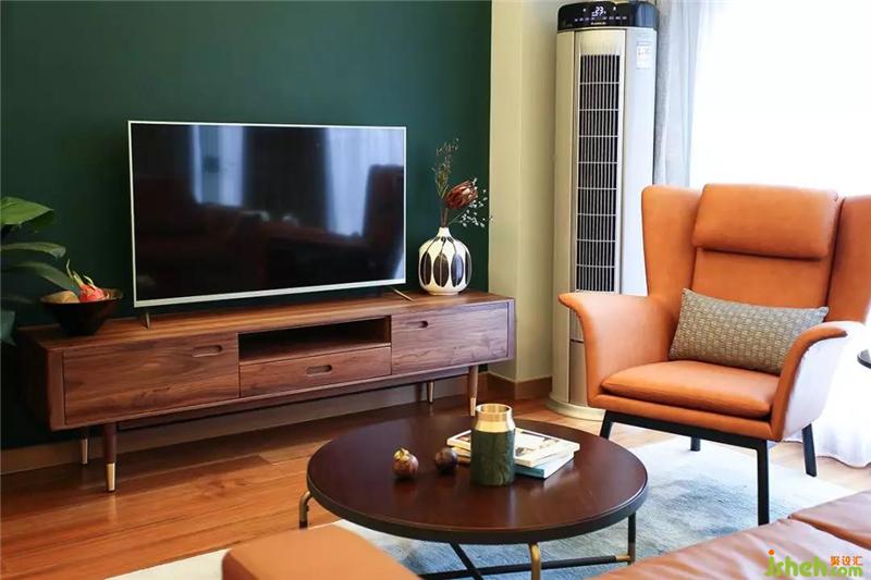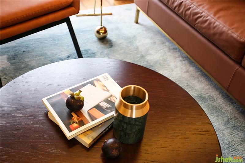 ▲造型復(fù)古的焦糖色真皮沙發(fā)與點綴著黃銅的胡桃木茶幾和電視柜慵懶地躺在客廳,它們就像一個電影濾鏡,將時光拉回到七八十年代燈紅酒綠的老上海,看似喧囂,隱匿在表象之下的其實是一份難得的安穩(wěn)與寧靜。室內(nèi)設(shè)計師