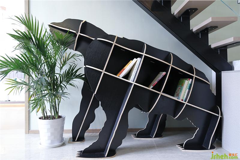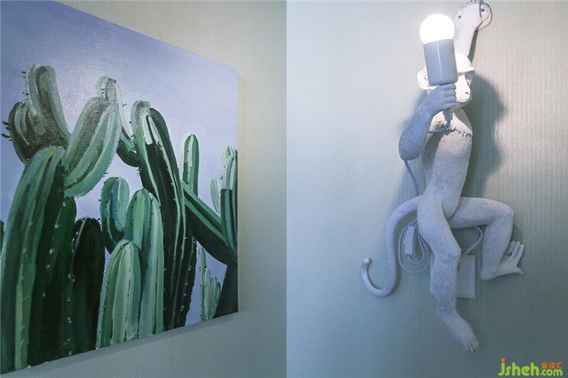 憨態(tài)可掬的大黑熊收納架、跳舞的仙人掌掛畫(huà),還有高高舉著手電筒的猴子燈等等放置在墻壁上,角落中,每發(fā)現(xiàn)一處,就多一份驚喜和歡樂(lè)。