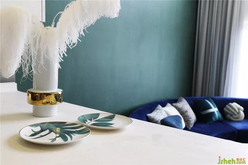餐盤(pán)上描繪的植物、幾只鳥(niǎo)靜靜的落在樹(shù)枝造型燈、飄逸的鴕鳥(niǎo)毛,這些都讓森林的感覺(jué)處處可知。
