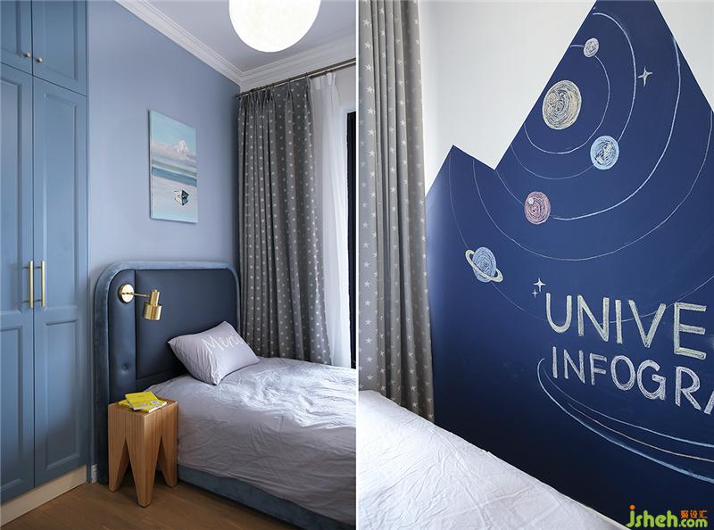 黃白色調(diào)的弟弟房間,干凈明亮,如同一道曙光清透溫暖。喜歡和哥哥一起玩樂高和滑板,所以兩個(gè)房間的床都盡量靠墻房多一些活動空間。