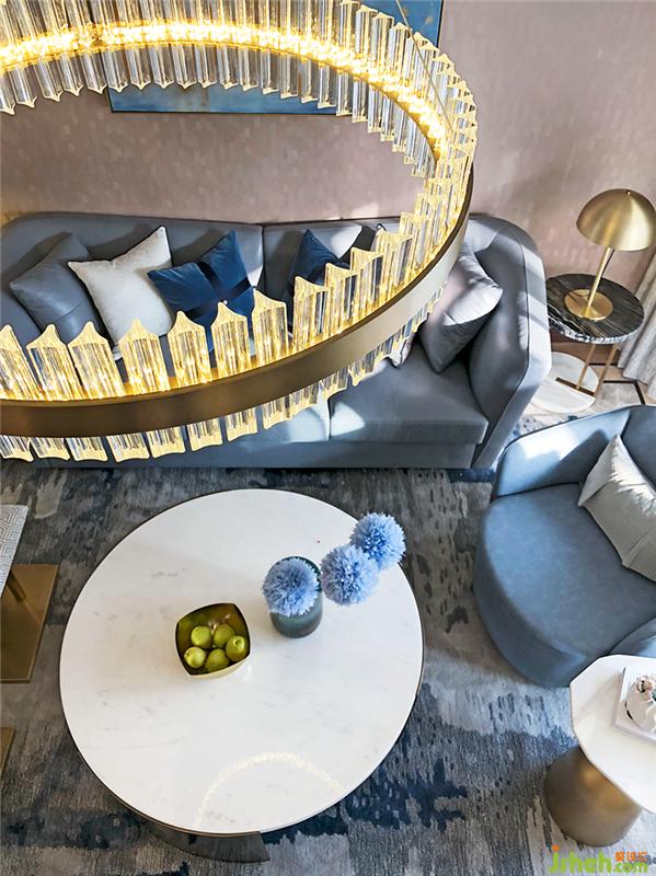 圓桌和異形邊幾營造輕奢藝術(shù)氛圍