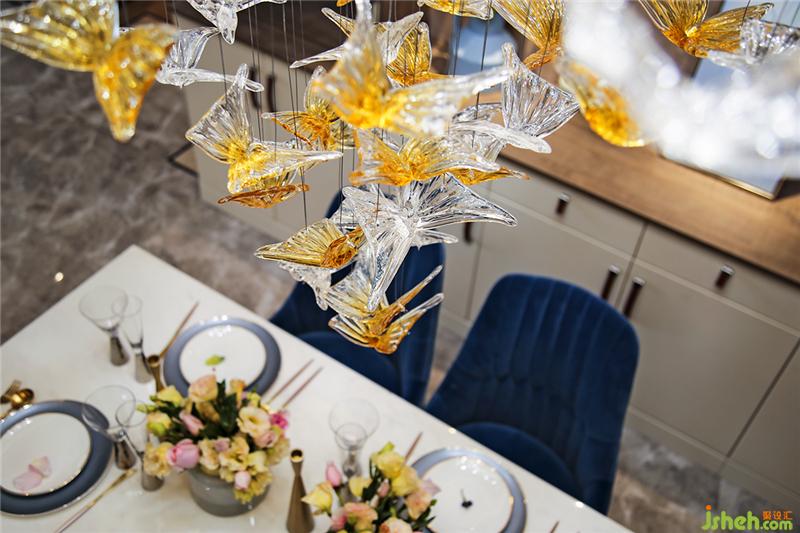 蝴蝶造型的裝置燈是這個家的 "精神堡壘",可以在這溫馨的燈光下,光影交錯之間開心地聊著天,規(guī)劃著往后的生活,一起做飯,邀三兩好友聚餐,溫馨而又滿足。