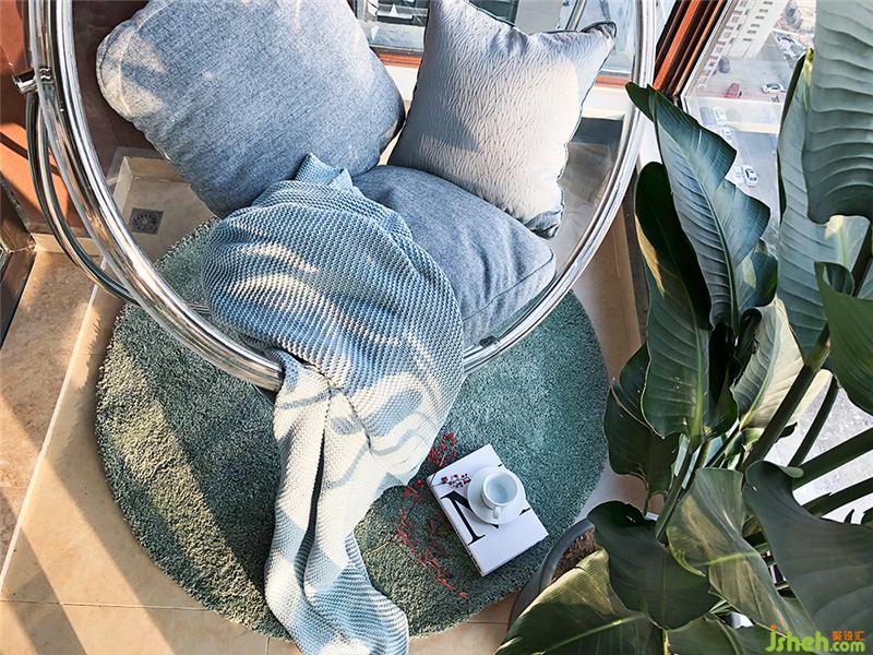 陽臺區(qū)放了太空椅,平常可以一起看看風(fēng)景或者讀讀書,晴天明媚的時候,就打開窗吸收滿滿的陽光。