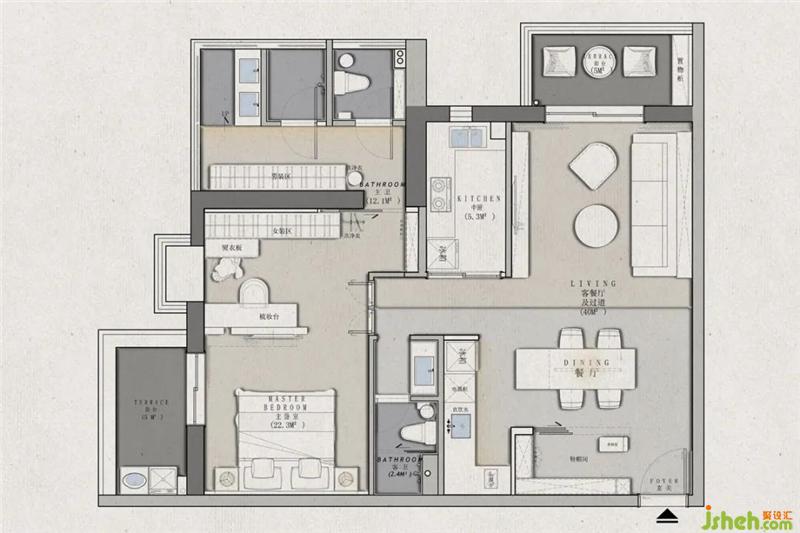 作為一個過渡時期使用的房子,不考慮未來小孩,不考慮訪客居住,拋開了這些限制之后要達到“既是住在自己家,也是住在酒店”。