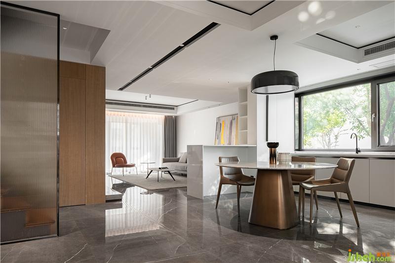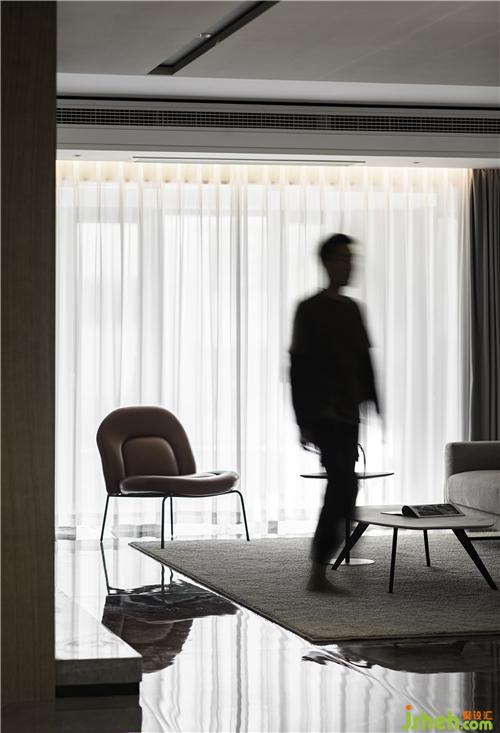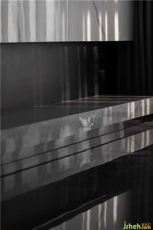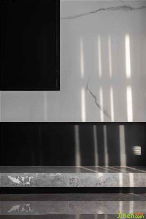 鏡面光澤的大理石鋪地,讓白天每一道光線,都能被捕捉反射,在室內(nèi)形成一種光影交錯(cuò)的高級美感。