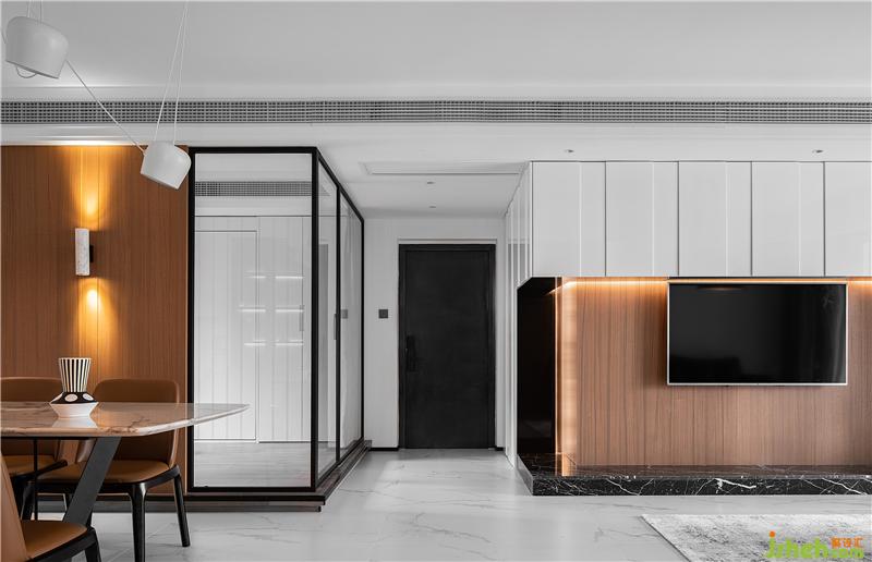 設(shè)計(jì)師巧妙的借由透明隔斷,南京裝修設(shè)計(jì)在餐廳旁切割出一個(gè)多功能空間,