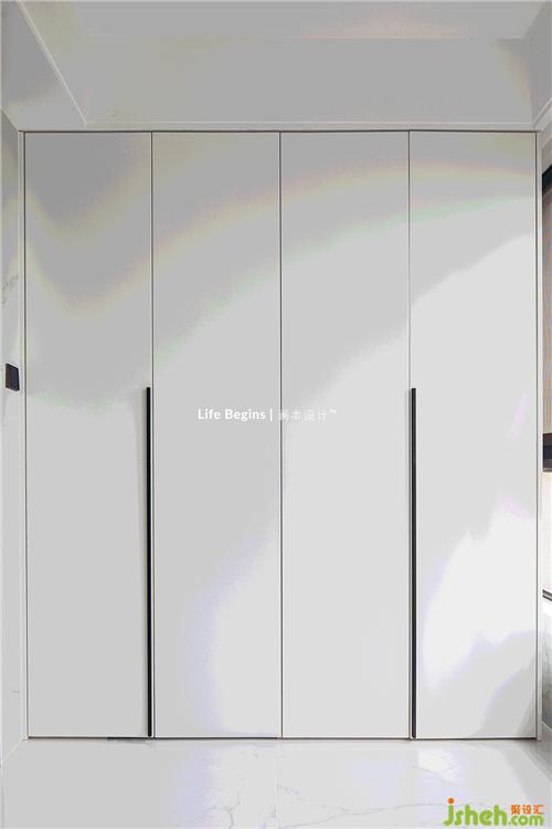 設(shè)計(jì)團(tuán)隊(duì)沿墻布置了兩排落地柜,潔白的柜門(mén)闔上時(shí),