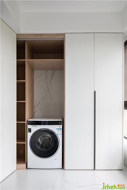 △被整合的北陽(yáng)臺(tái)的原有功能,洗衣房,也被巧妙的隱藏起來(lái)。