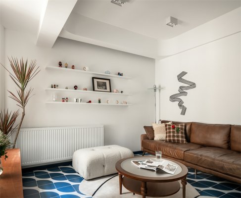 2、把北向兩間房并成一間,以書柜為隔做成帶書房的套間,可以滿足休息和日常擺弄自己的手辦。隨處可見的柜子,隨處可見的各類珍藏。