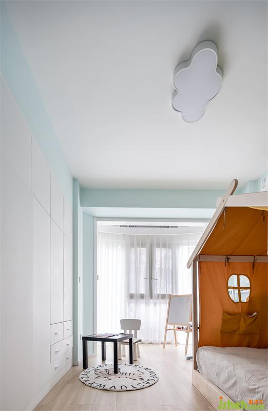 進(jìn)門(mén)左手邊就著柱子的厚度做了整排衣柜。下方幾個(gè)大抽屜可以收納玩具和娃娃,把小姑娘的心愛(ài)之物都集中起來(lái),好看又好玩的兒童房,讓孩子的獨(dú)立之旅更加容易。