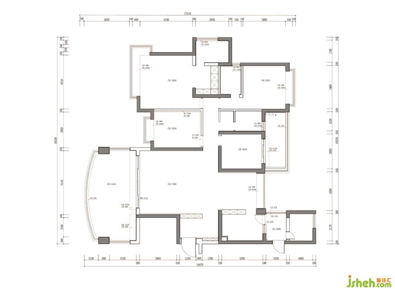 8.主臥到多功能房的中部無采光區(qū)域,合理做了很強的收納和女主人的衣帽間