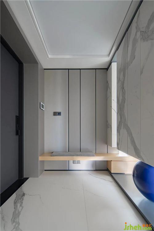 1.入戶的玄關空間視覺+功能的完美結合,玄關到客廳視覺空間的延伸性得以保留,換鞋凳的設計結合了電視柜的轉折,大收納的鞋柜儲物柜試衣鏡感應的軟膜天花一應俱全。