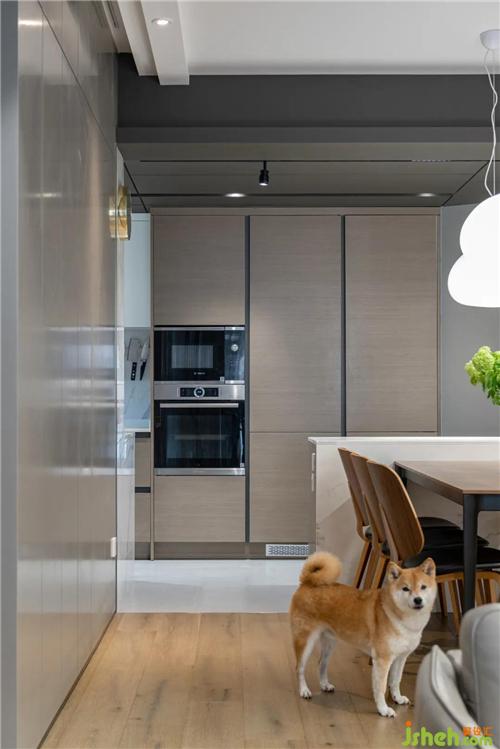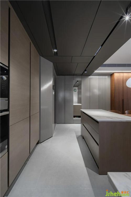 與客廳相對的部分是“西廚”,三個立柜里嵌入了兩組冰箱、蒸烤箱和微波爐。深圳裝修設(shè)計島臺充當(dāng)了工作臺、無論是做面包、包餃子、做西餐,還是沖咖啡插花,都得心應(yīng)手。島臺一側(cè)預(yù)留了電源,火鍋、廚師機(jī)、咖啡機(jī)使用起來也都很方便。