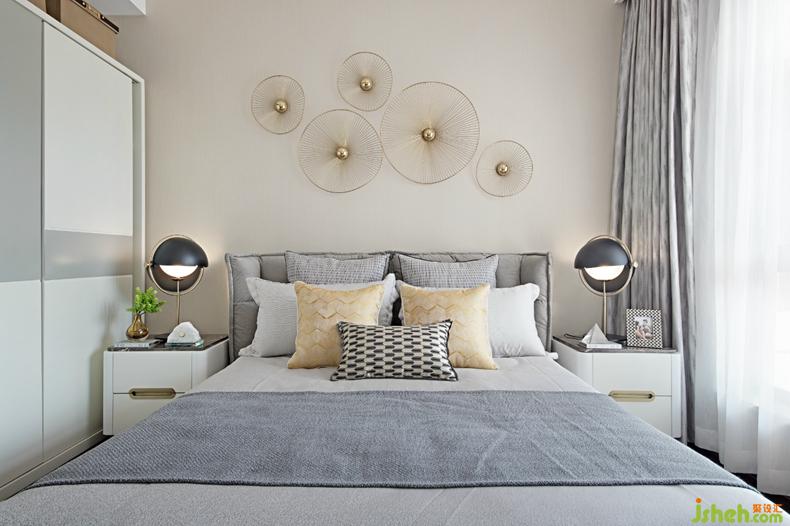 主臥延續(xù)空間的一貫色調(diào),盡顯清新淡雅,藝術(shù)裝飾畫抽象大氣,彰顯高品味的同時(shí),給人舒適、自在、愜意的居住體驗(yàn)。設(shè)計(jì)公司