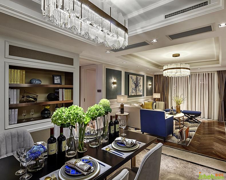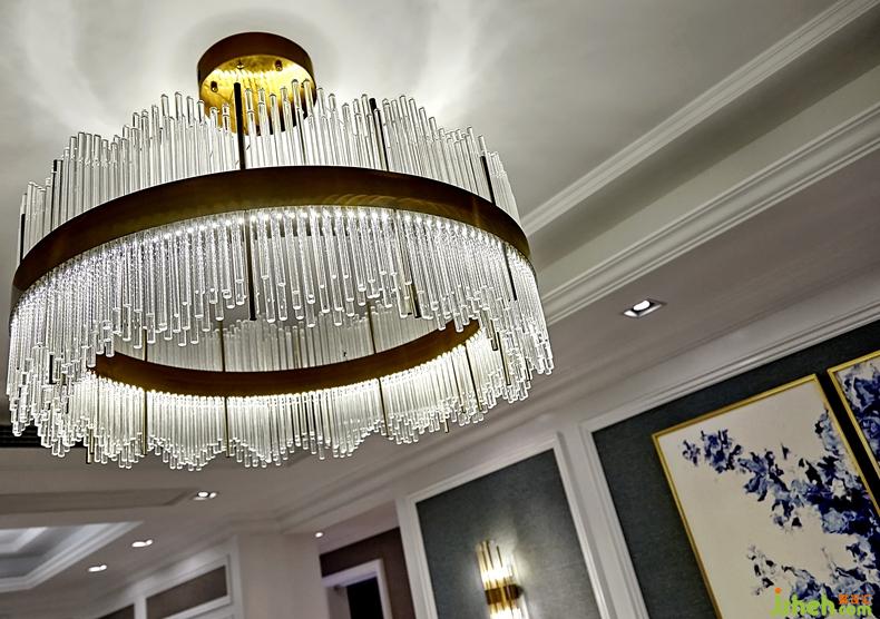 開放式的空間,玻璃吊燈,進口皮革,玻璃吊燈,在暖色系光亮石材的空間里,穩(wěn)重而不失格調(diào)。