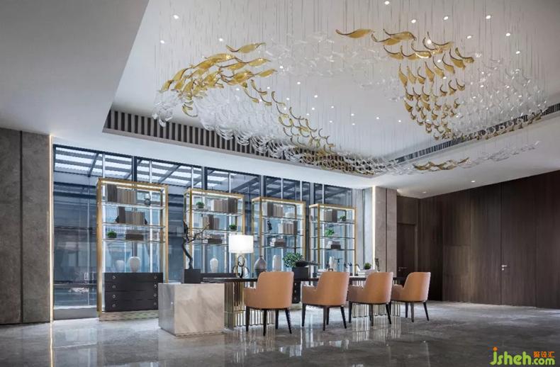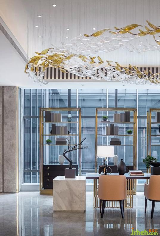 像是一場(chǎng)秋天的童話,懸掛而下的水晶吊燈隨波蕩漾,樹在伸展它金黃色的枝椏。