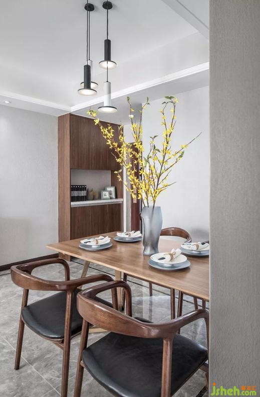 設(shè)計師借助原木的溫婉、棉麻的素凈、鮮活的植物等元素,讓室內(nèi)充盈明澈清新的北歐風情。