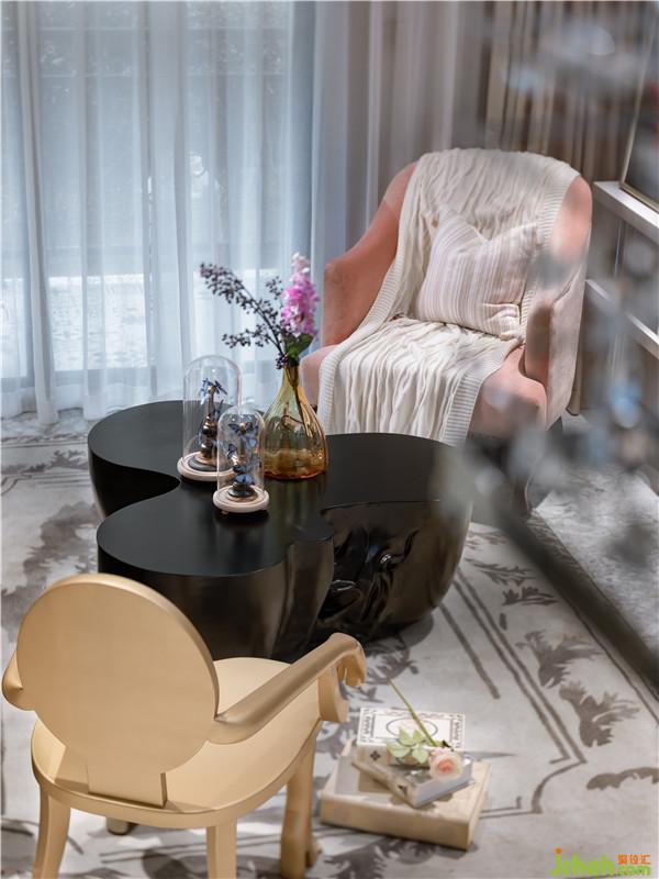 餐廳區(qū)鳥籠外框的水晶吊燈,撥轉(zhuǎn)時鐘的吊針,兔子先生再也不會被遲到困擾。鏡面照映,仿佛定格在森林的幻象之中,長出兔子耳朵、鹿角的餐廳座椅與鳥籠是森林中格格不入的外來者,是掩藏在荒誕不經(jīng)外表下的夢境。深圳裝修公司