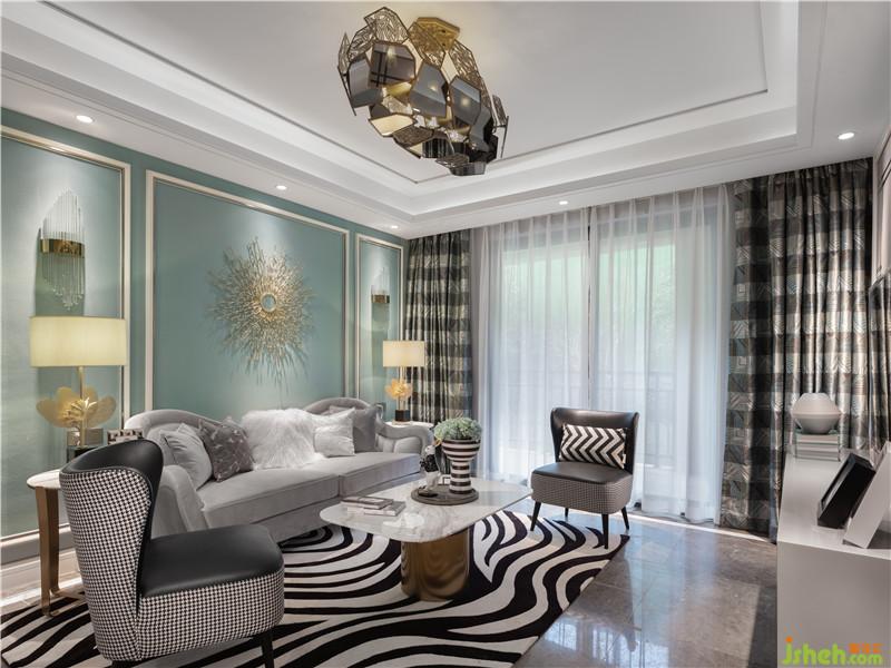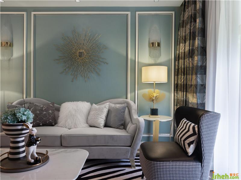 時尚的蒂凡尼藍(lán)間結(jié)合一抹黑白,如一抹花卷,讓客廳呈現(xiàn)出了靈動而優(yōu)雅的氣質(zhì)。即便沒有怦然心動,但總有一隅可以填滿內(nèi)心的期許。