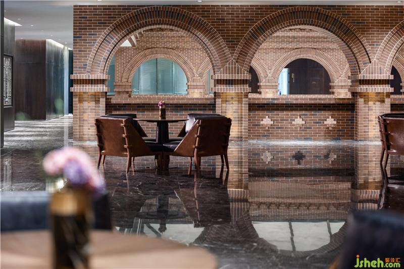 拾級(jí)而上,圓拱形的紅磚墻面延續(xù)了第一眼的英倫視覺(jué)觸動(dòng),同時(shí)從淺層初印象縱深到對(duì)商業(yè)價(jià)值的深入思索,設(shè)計(jì)師借由軟裝美陳在空間中做藝術(shù)氛圍與商業(yè)價(jià)值的平衡術(shù)表達(dá)。