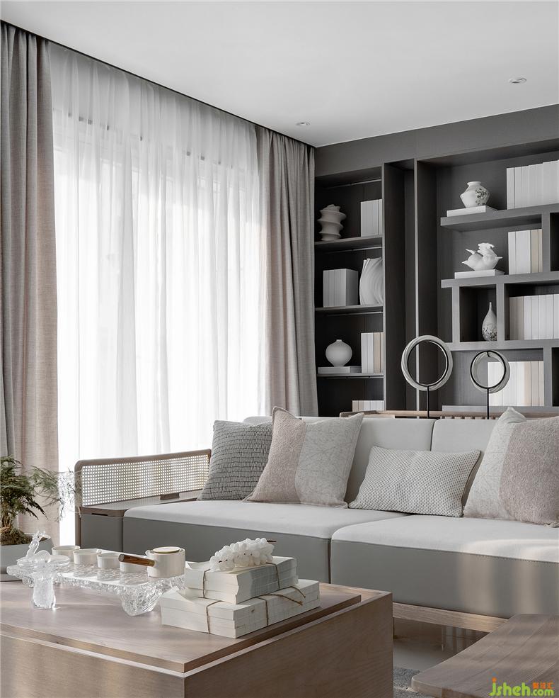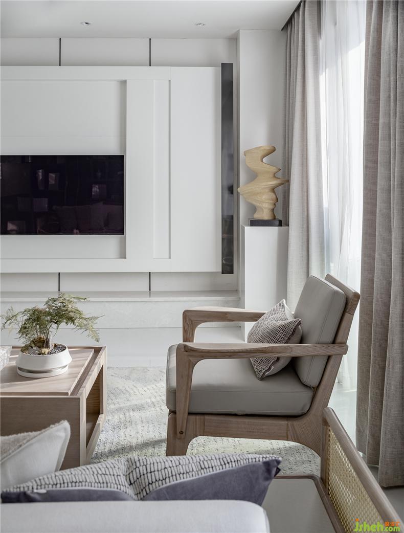 樣板房設計設計師以精致器物的選擇,抵抗當下消費主義熱鬧喧囂下的空洞無聊。選擇那些經(jīng)得起反復推敲的配飾,并以極簡的形式和素雅的色彩,隱去具體的具象,從而給思考和心靈留下空間,并發(fā)展出一種生活觀念和美學意識。