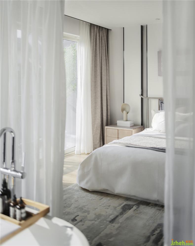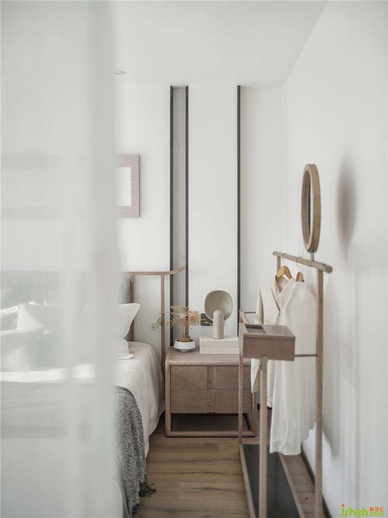 臥室,是人們真實的直面自我的空間,坦誠地面對自己,面對伴侶。整樣板房設(shè)計體空間優(yōu)雅舒緩,家具承襲明式家具的精粹,以纖細的線條強調(diào)出空間的靜美,線于線平行而又和諧的共處一室,亦如成熟而獨立的個體。