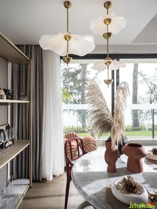 米白與暖灰的基色,搭配棕色點(diǎn)綴。當(dāng)遠(yuǎn)離繁忙的都市,樣板房設(shè)計(jì)在這里或度假或休憩,又或是景觀窗前的驚鴻一瞥,遇見(jiàn)愛(ài)情就在美好的一瞬間。