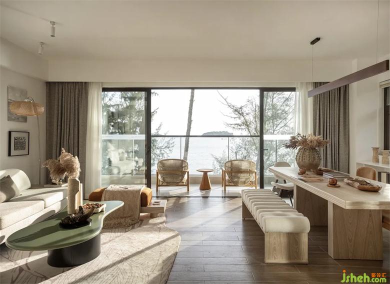 整體明亮的色調(diào),干凈不瑣碎,輔以適當(dāng)暖色,每一位家庭成員都不會覺得突兀。樣板房設(shè)計餐廳除了吃飯,還可以是互動區(qū);大面落地景觀窗將自然引入家中,海景視角無限延長;家庭的周末時光充滿愛與陪伴。