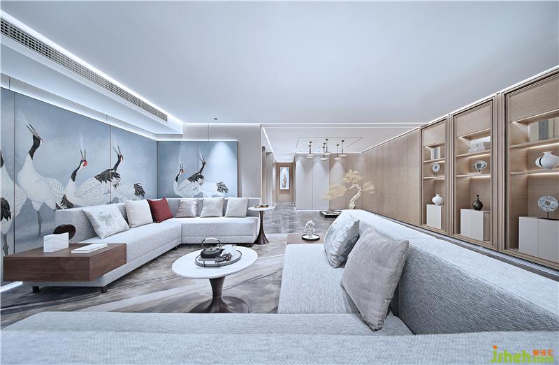 負(fù)二層車庫(kù)入戶以“松”“鶴”為主題元素為空間營(yíng)造自然祥瑞的深刻立意,結(jié)合寬敞舒適的歇腳休閑廳讓主人進(jìn)入家的一刻鐘體驗(yàn)到“放松、愉悅、詩(shī)意、舒適”的歸屬感。樣板房設(shè)計(jì)