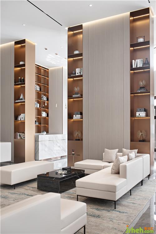 大理石底座暖色金屬臺(tái)面的小臺(tái)子加強(qiáng)了整體設(shè)計(jì)的平穩(wěn)和諧。
