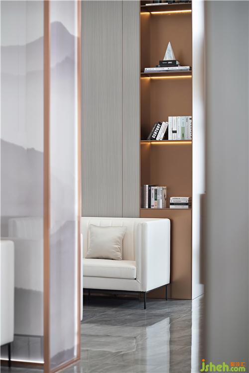 隔斷與屏風(fēng)的結(jié)構(gòu)巧妙劃分出公共與較為私人的區(qū)域,整體空間的設(shè)計(jì)顯得更為井井有條層次分明。