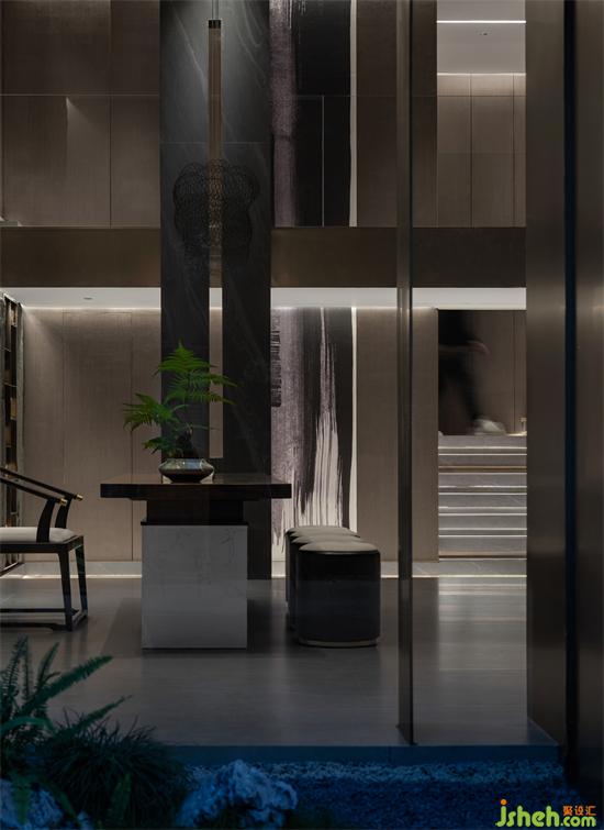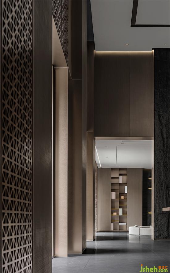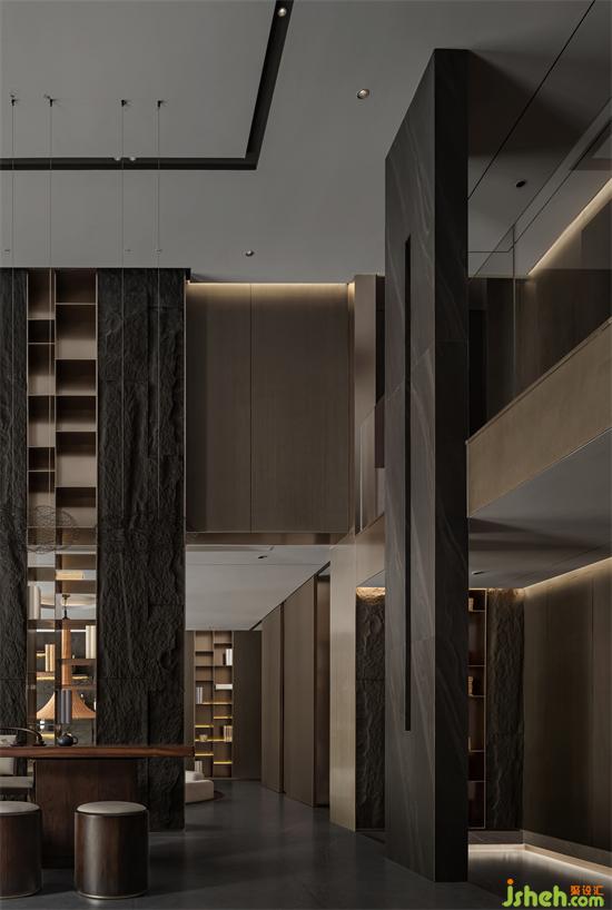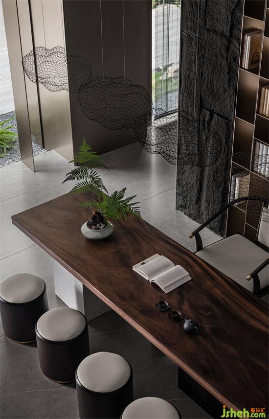 東方水墨意境延展至室內(nèi)空間,自然質(zhì)樸的材質(zhì),強調(diào)本身的屬性與美感。通過巖板、石材、木飾面、金屬、瓦片等新舊材料的有序組合、當(dāng)代的表達,使材料的物質(zhì)屬性和傳遞的精神意向互相作用,私人會所設(shè)計讓空間變得純粹而富有情感張力。