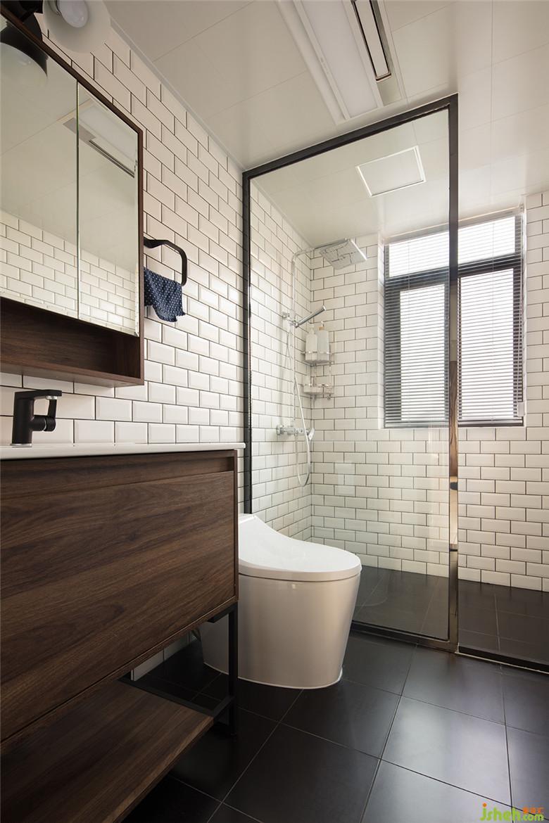 主衛(wèi)黑白分明,用鋼化玻璃作為隔斷,做了干濕分區(qū)。