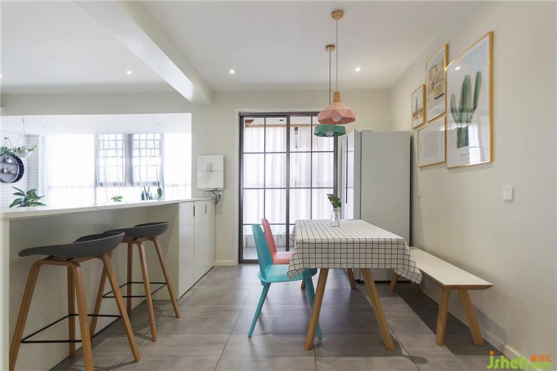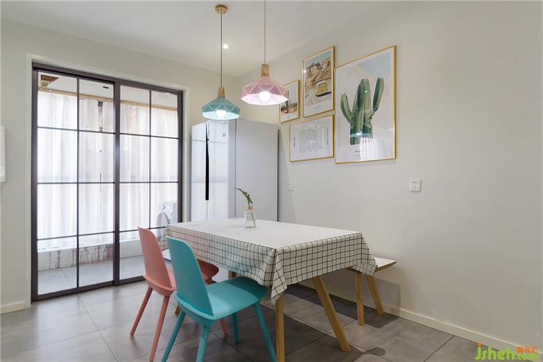 粉、藍色北歐餐椅,與吊燈顏色相響應(yīng),自然清新的裝飾畫,更顯小清新氣質(zhì)。