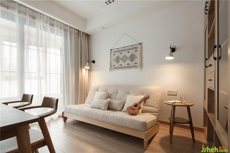 小孩房先作為多功能房的第一形態(tài),以后再變回小孩房。壁燈是按以后擺床的尺寸定的位置。